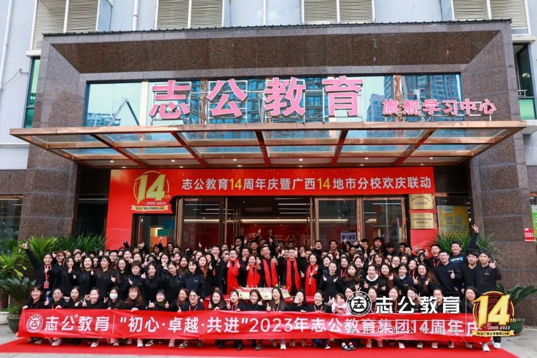 十四次春秋更替,十四載辛勤耕耘,又是一年冬季,志公教育迎來了他14周歲的生日。2023年12月16日,志公教育全體員工歡聚南寧總部,喜迎十四周年慶——“不忘初心,追求卓越,攜手共進”,全體員工出席活動。