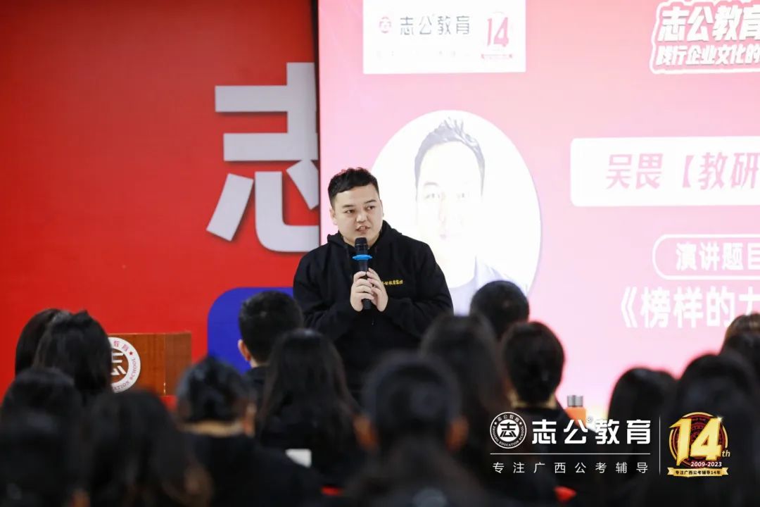 16日上午9點許,董事長李勇發(fā)表致辭,他認為:“聚焦是一種力量”,對于志公教育而言,聚焦就是專注廣西公考輔導(dǎo)。