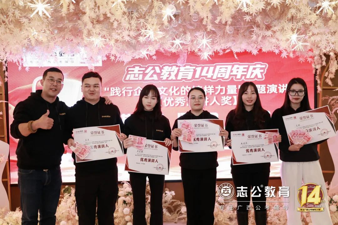 一直以來,志公教育都秉承著“12條企業(yè)文化核心價值觀”,包括客戶原則——以學(xué)員為中心”、“管理原則——人人都是經(jīng)營者”等12項原則,扎根廣西本土公考,全力服務(wù)每一位志公學(xué)員。在董事長李勇的正確領(lǐng)導(dǎo)下,在廣大學(xué)員的支持下,在全體員工的共同努力下,志公教育從無到有,從小到大,不斷夯實發(fā)展基礎(chǔ),贏得了客戶的信賴和品牌形象。全體志公人將堅定目標齊奮斗、凝心聚力再出發(fā),為志公高質(zhì)量發(fā)展再立新功。