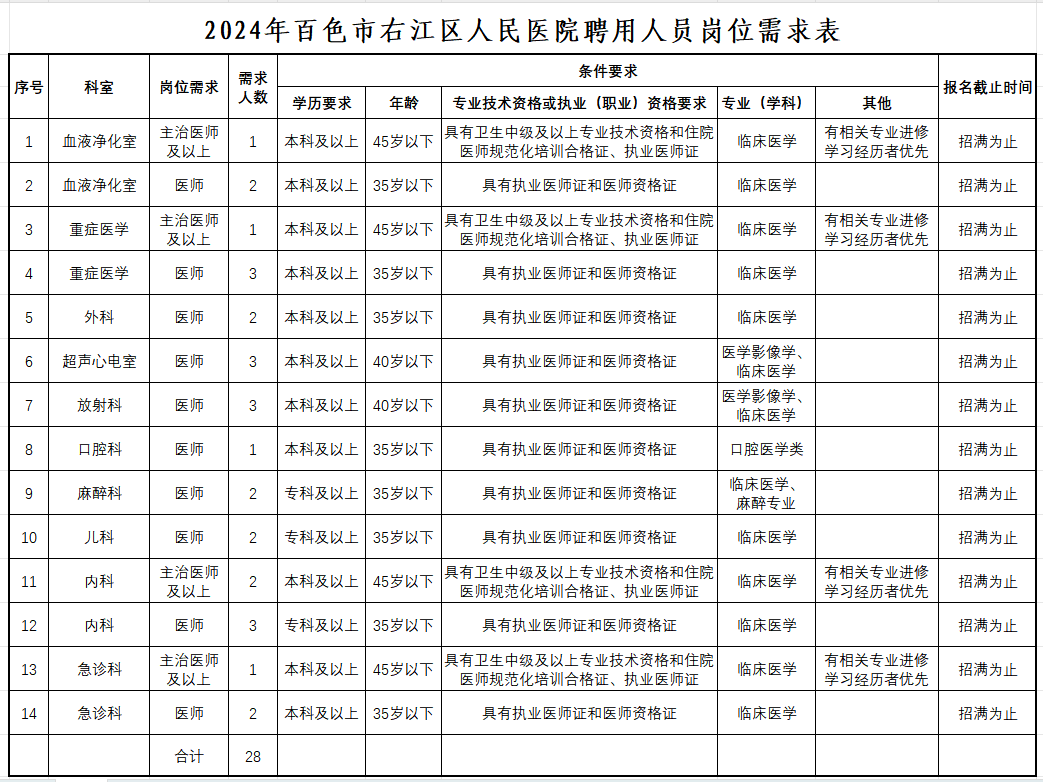 原文標題:百色市右江區(qū)人民醫(yī)院2024年公開招聘工作人員公告