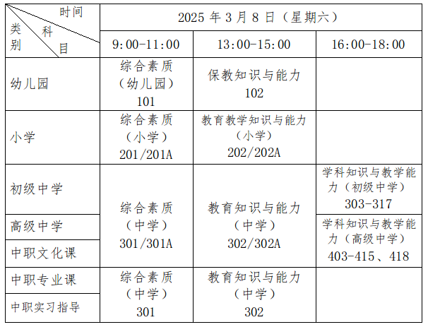 3.報(bào)考中職專業(yè)課和中職實(shí)習(xí)指導(dǎo)教師資格的考生,筆試考2個(gè)公共科目,科目代碼分別為301、302。