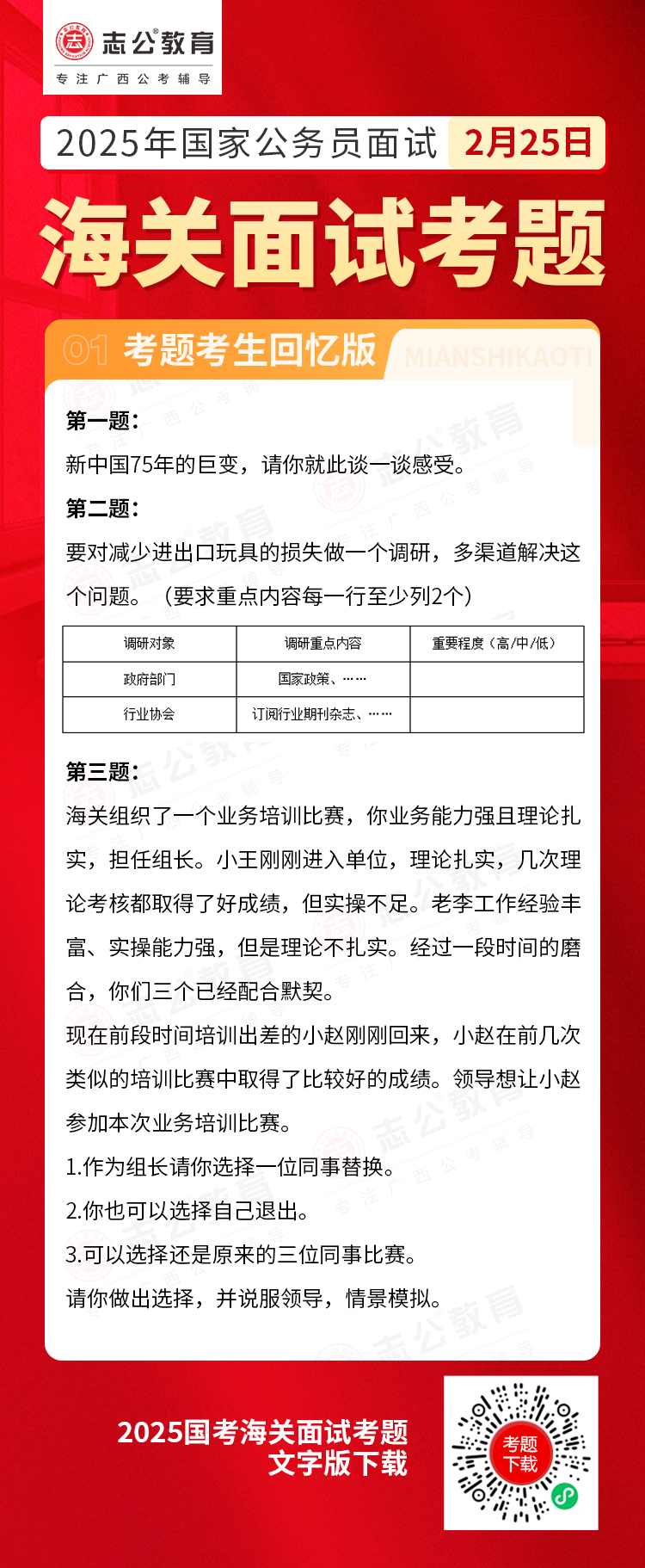 2025年2月25日國考海關面試考題(考生回憶版)