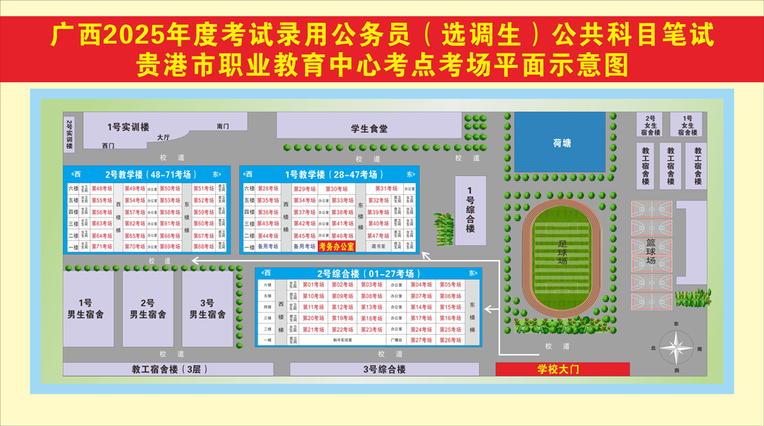 考試開始30分鐘后考生嚴(yán)禁進(jìn)入考場(chǎng),請(qǐng)廣大考生提前一天熟悉考點(diǎn)學(xué)校所在位置、公共交通路線,考試當(dāng)天盡量選擇公共交通工具出行??荚嚻陂g考點(diǎn)實(shí)行封閉管理,考點(diǎn)學(xué)校不允許外來車輛出入,考生須自行解決停車問題。