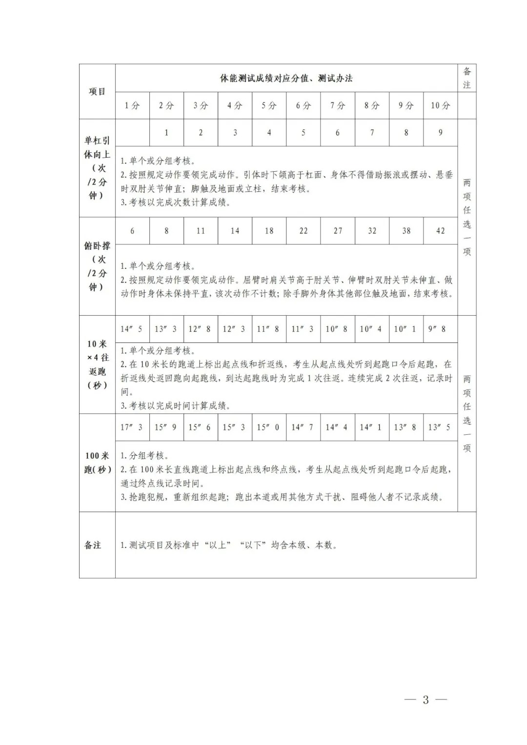 測試時間、地點具體以通知為準,應聘人員須參加體能測試,并當場簽訂《體能測試健康安全風險承諾書》。體能測試有兩項及兩項以上不得分的視為不合格(標準參照附件)。