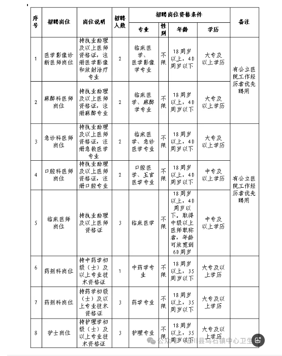 報(bào)名地點(diǎn):陸川縣烏石鎮(zhèn)中心衛(wèi)生院五樓院辦公室。(咨詢(xún)電話(huà):0775-7132235)。