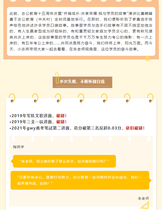 他成功上岸后,滿懷感激地給我們志公教育全體老師送來了錦旗。作為他的報(bào)班老師,我很欣慰看到他的努力得到了回報(bào)。他的勵(lì)志奮斗上岸故事也讓我深受鼓舞,讓我深刻認(rèn)識(shí)到,只要有堅(jiān)定的目標(biāo),持之以恒的努力,善于借鑒他人成功的經(jīng)驗(yàn),我們也能在工作中取得更多的成就與進(jìn)步!幫助更多學(xué)員實(shí)現(xiàn)他們的夢想!向?qū)W員學(xué)習(xí),也向所有致力于努力備考奮斗的學(xué)員們致敬!
