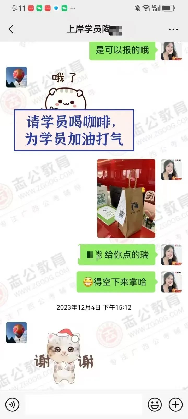 為他安排一杯暖心的咖啡,他在第二天也回請了我“帶有西大文化底蘊(yùn)的瑞幸”。期間,還主動(dòng)給我轉(zhuǎn)介紹了 3 個(gè)同學(xué)來報(bào)班!在這條逐夢的道路上,我們不僅僅是師生,更是相互信任、相互支持的知心朋友。