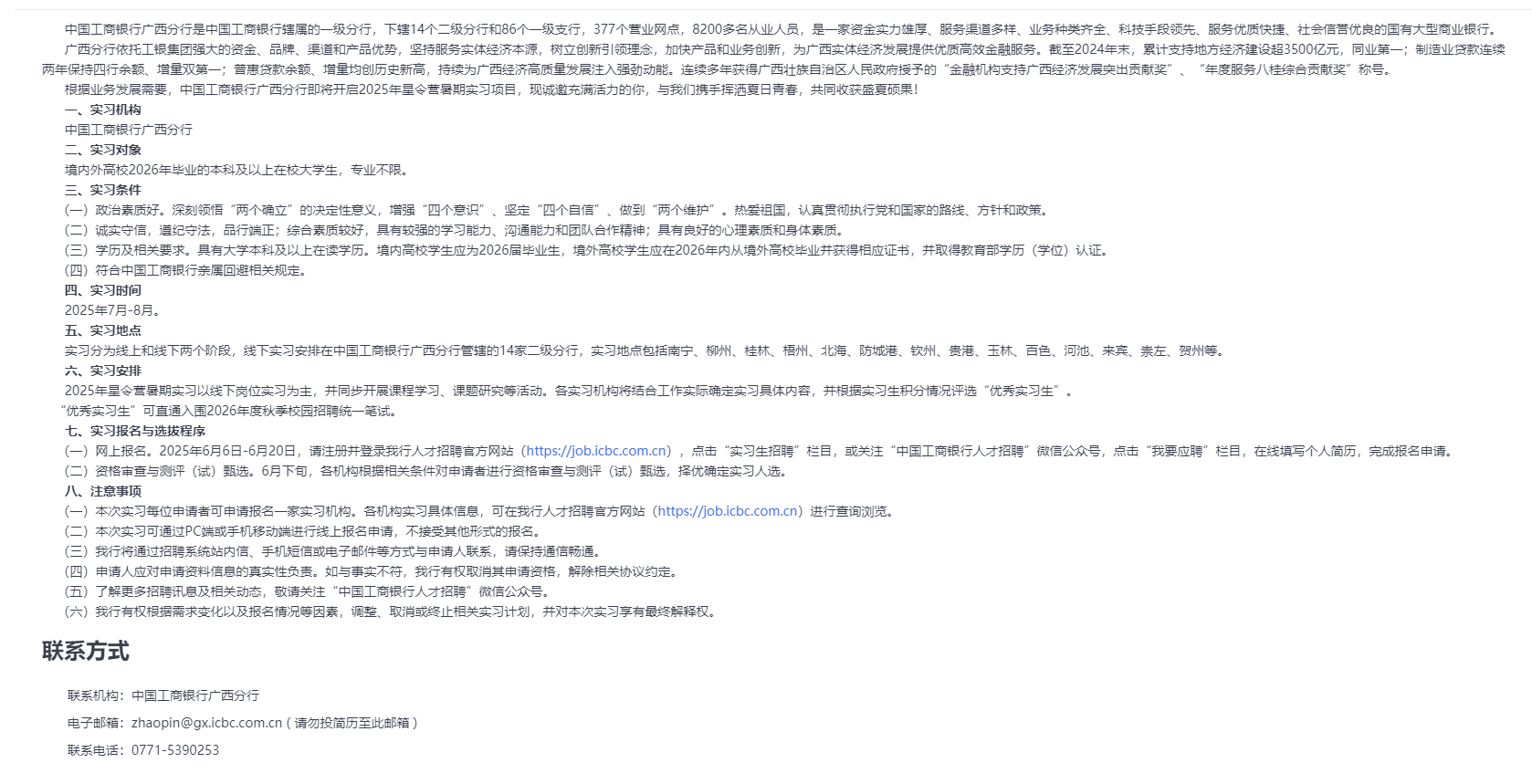 中國工商銀行廣西分行2025年星令營暑期實習(xí)公告