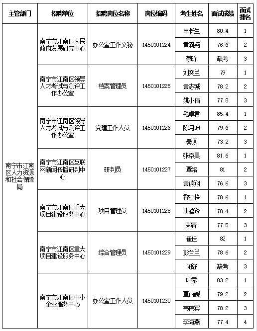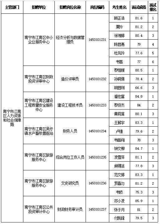 原文標題:南寧市江南區(qū)人力資源和社會保障局2025年公開考試招聘事業(yè)單位工作人員面試成績表