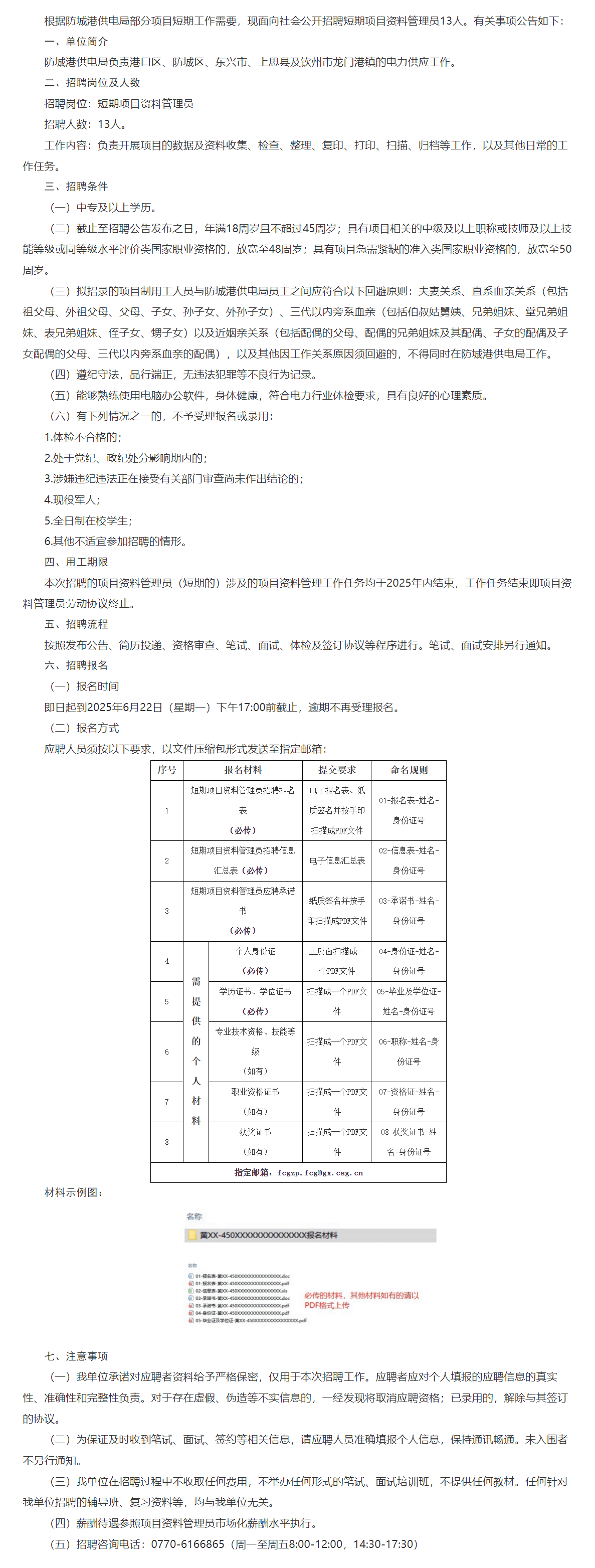 原文標(biāo)題:防城港供電局2025年短期項目資料管理員招聘公告