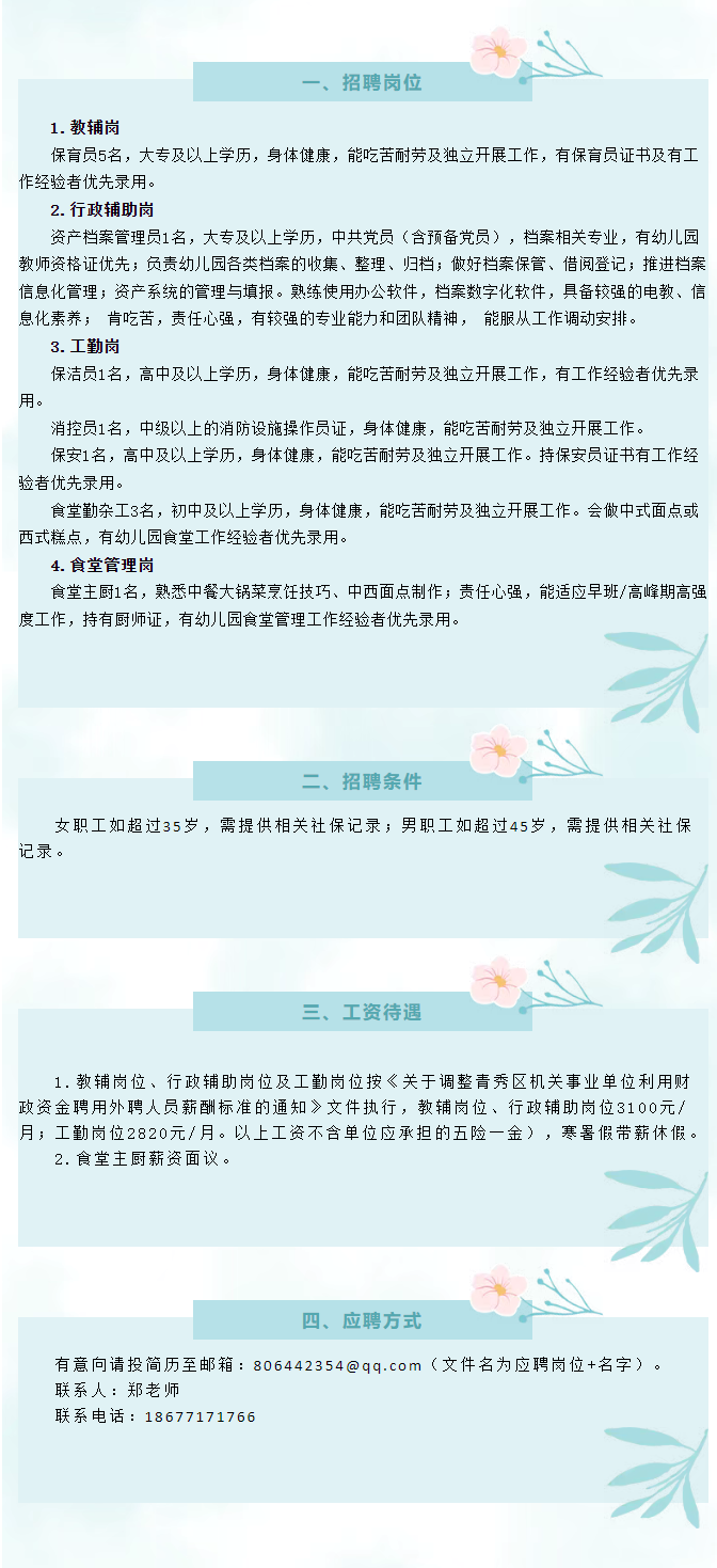 原文標題:南寧市濱江路幼兒園招聘信息