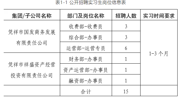 本次共計(jì)劃招聘憑祥市國(guó)際貿(mào)易開發(fā)集團(tuán)有限公司下屬企業(yè)實(shí)習(xí)生崗位15人。具體要求詳見(jiàn)《附件1:憑祥市國(guó)際貿(mào)易開發(fā)集團(tuán)有限公司2025年公開招聘暑期實(shí)習(xí)生崗位信息表》