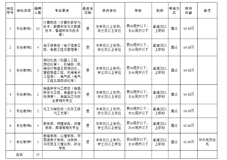 本次公開招聘副高及以上職稱專任教師共計(jì)35名,具體招聘崗位及條件如下: