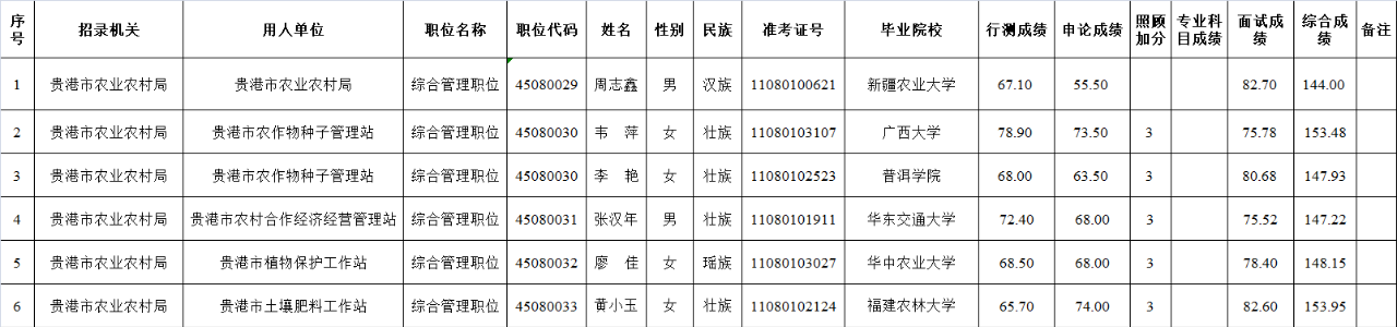 6.6 貴港市農(nóng)業(yè)農(nóng)村局2025年度考試錄用公務(wù)員擬錄用人員名單