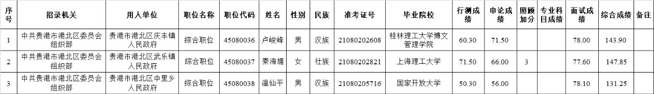 6.17 貴港市2025年從應(yīng)屆優(yōu)秀大學(xué)畢業(yè)生中招錄選調(diào)生擬錄用人員公示