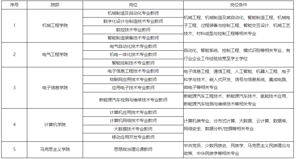 4.專任教師崗具有碩士及以上學(xué)位;具有高校教學(xué)經(jīng)驗(yàn)、中級以上專業(yè)技術(shù)職務(wù)或行業(yè)企業(yè)工作經(jīng)驗(yàn),條件可放寬至學(xué)士學(xué)位;