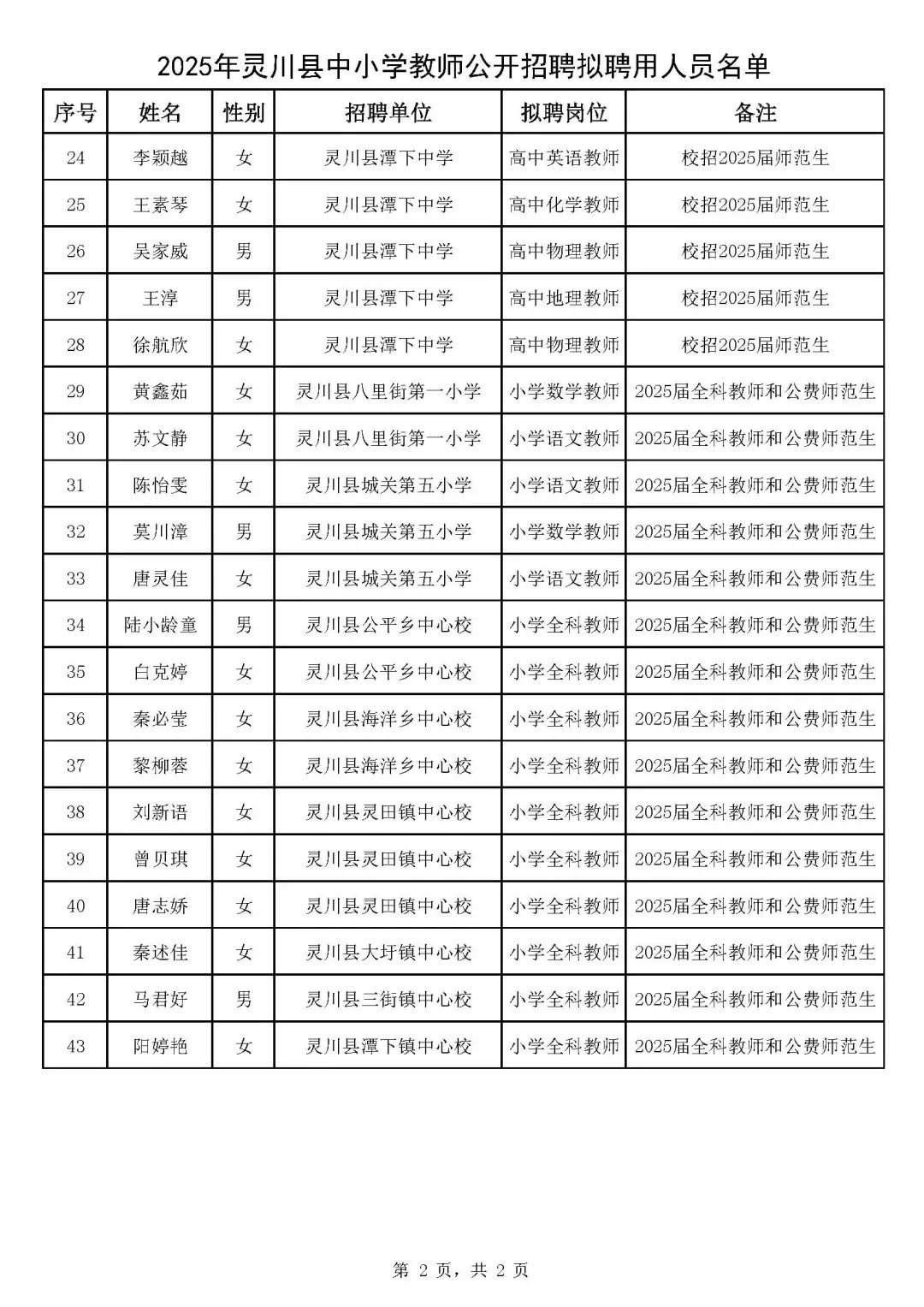 2025年靈川縣中小學(xué)教師公開(kāi)招聘擬聘用人員名單公示