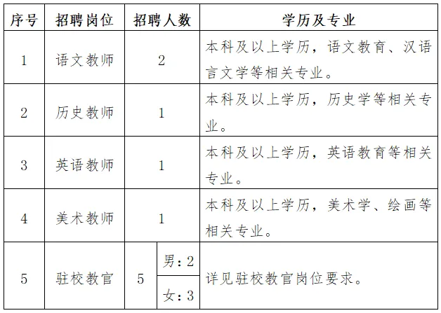 2.女教官:大專及以上學歷,有駐校教官工作經(jīng)歷或宿管工作經(jīng)歷。(退役軍人,軍警司法院校畢業(yè)生,體育專業(yè)大專以上畢業(yè)生優(yōu)先)