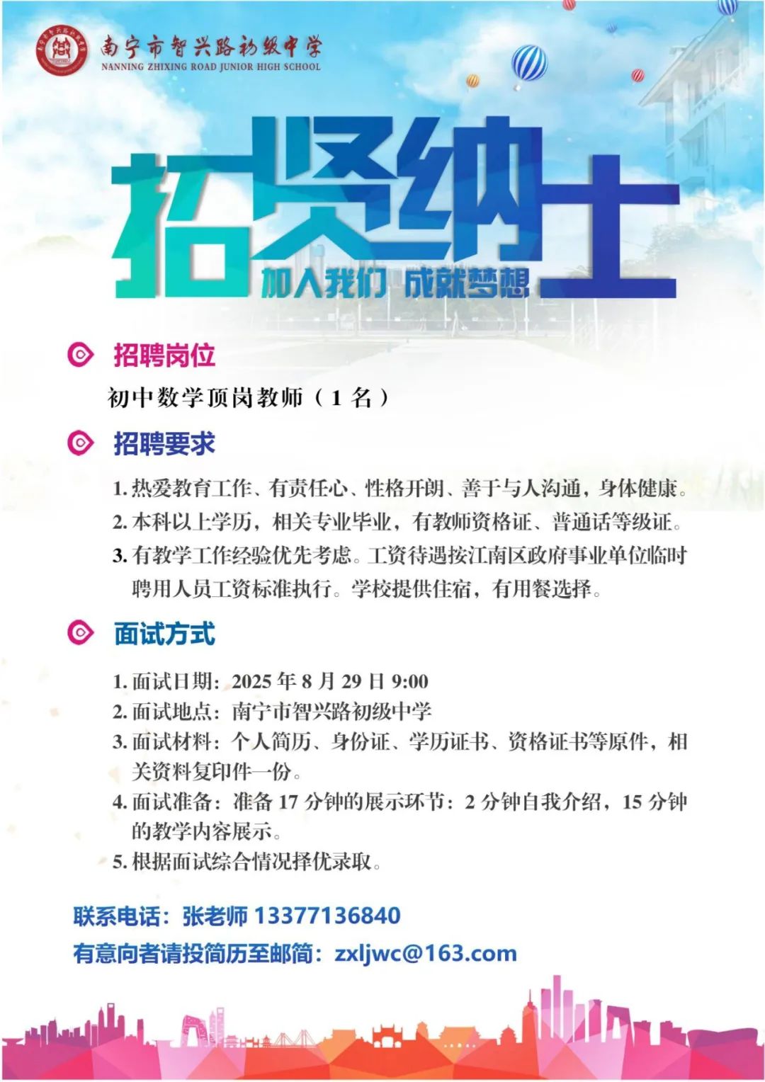 原文標題:南寧市智興路初級中學2025年秋季學期招聘公告