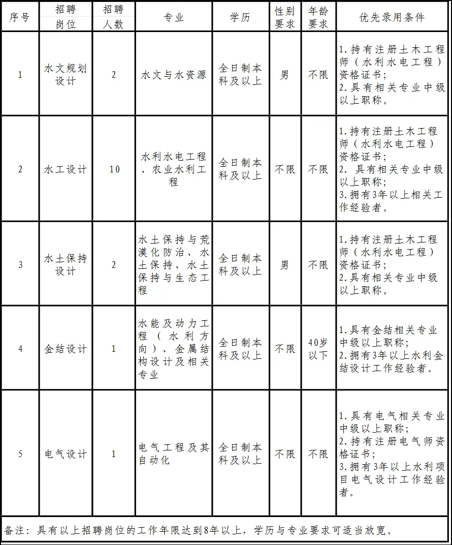 (九)用工方式:錄用人員為研究生學歷或持有注冊執(zhí)業(yè)資格證或具有中級及以上工程師職稱,可采用與公司簽訂合同,其余人員采用勞務派遣方式與相應勞務派遣公司簽訂勞動合同。