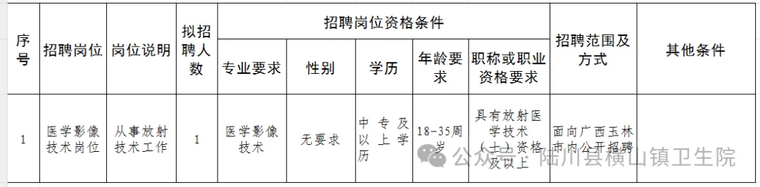 報名地點:陸川縣橫山鎮(zhèn)衛(wèi)生院四樓院辦公室。(咨詢電話:0775-7125668)。
