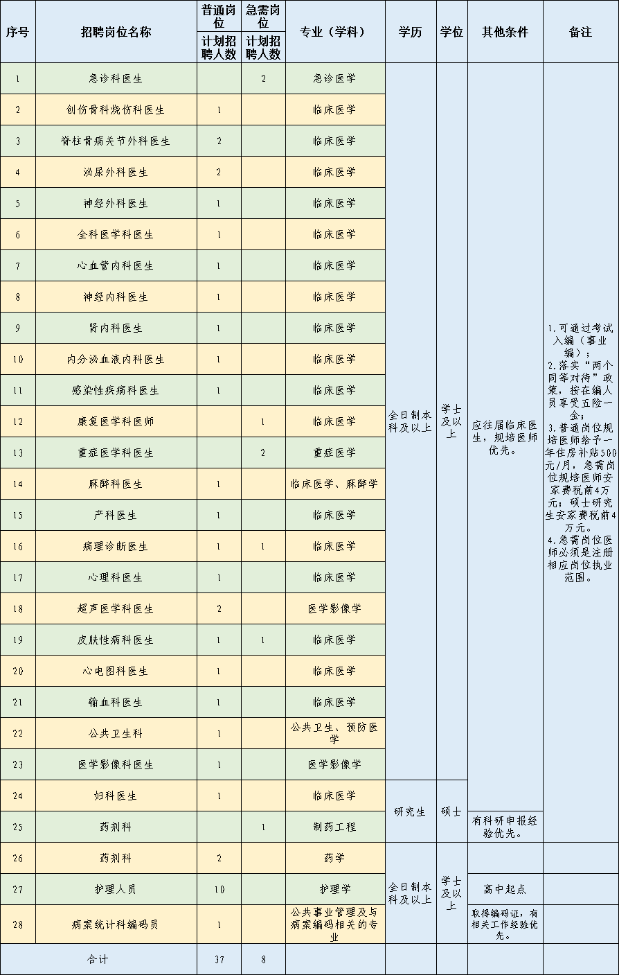 2.具有規(guī)培合格證的醫(yī)生依照國衛(wèi)辦科教發(fā)〔2021〕18號文件,落實(shí)“兩個(gè)同等對待”政策,即“面向社會招收的普通高校應(yīng)屆畢業(yè)生培訓(xùn)對象培訓(xùn)合格當(dāng)年在醫(yī)療衛(wèi)生機(jī)構(gòu)就業(yè)的,在招聘、派遣、落戶等方面,按當(dāng)年應(yīng)屆畢業(yè)生同等對待。對經(jīng)住培合格的本科學(xué)歷臨床醫(yī)師,在人員招聘、職稱晉升、崗位聘用、薪酬待遇等方面,與臨床醫(yī)學(xué)、中醫(yī)專業(yè)學(xué)位碩士研究生同等對待”。普通崗位規(guī)培醫(yī)師給予一年住房補(bǔ)貼500元/月,急需崗位規(guī)培醫(yī)師安家費(fèi)稅前4萬元,急需崗位醫(yī)師必須注冊相應(yīng)崗位執(zhí)業(yè)范圍。