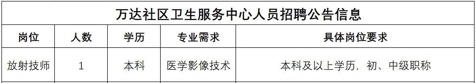 2025年萬達(dá)社區(qū)衛(wèi)生服務(wù)中心人員招聘公告