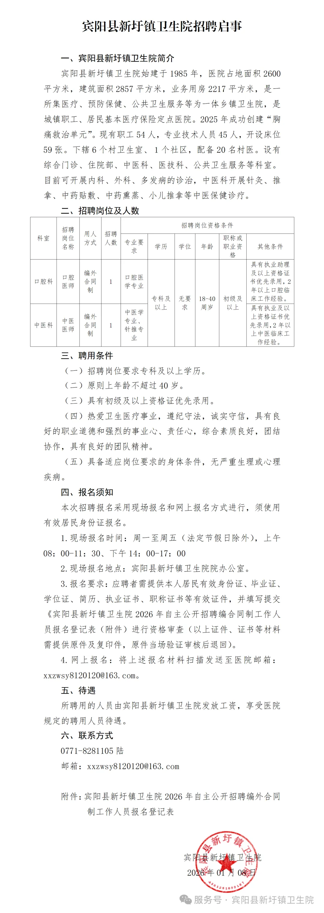 2026年賓陽縣新圩鎮(zhèn)衛(wèi)生院衛(wèi)生專業(yè)技術人員招聘簡介