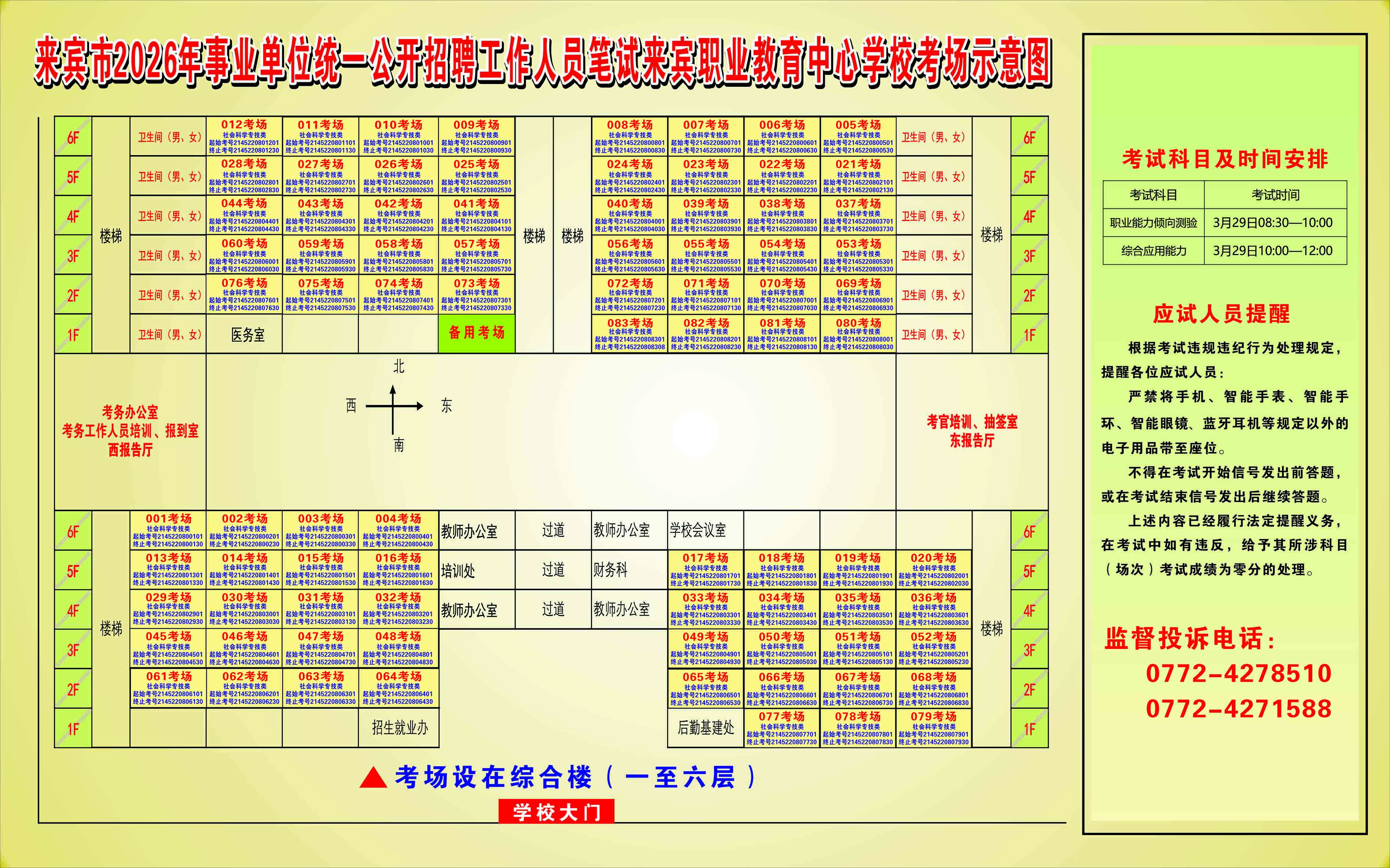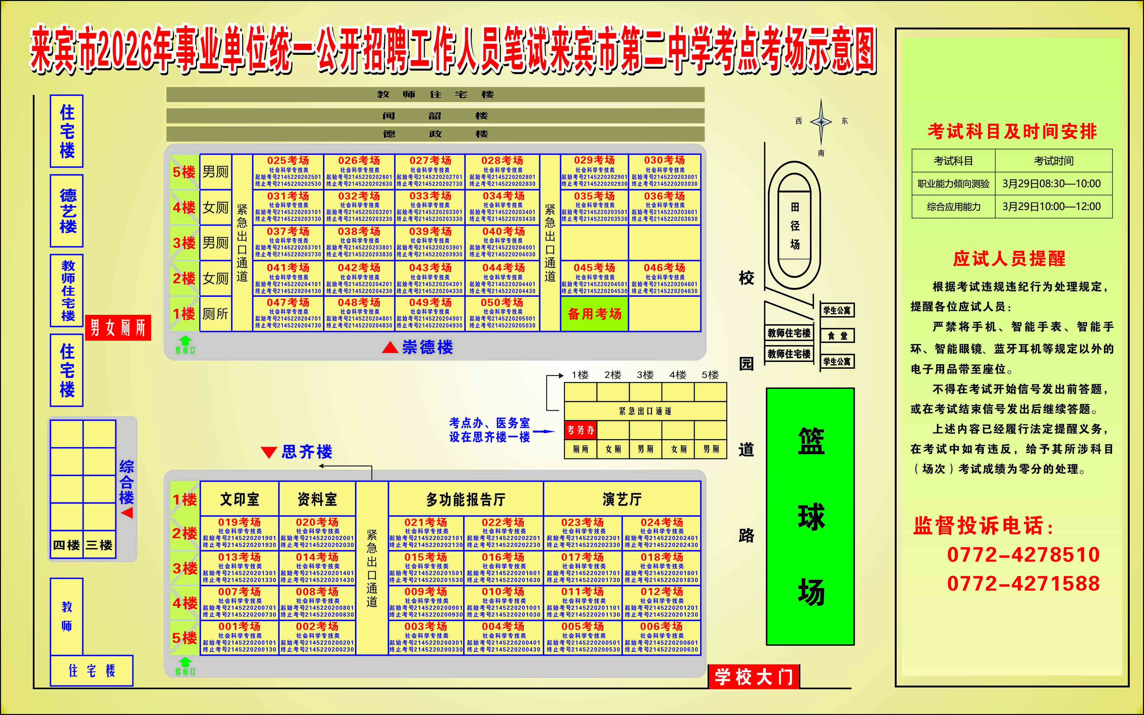 5.3月29日自然科學(xué)專技類(C類),來賓市第六中學(xué)考點(diǎn)(來賓市興賓區(qū)政和路北178號)